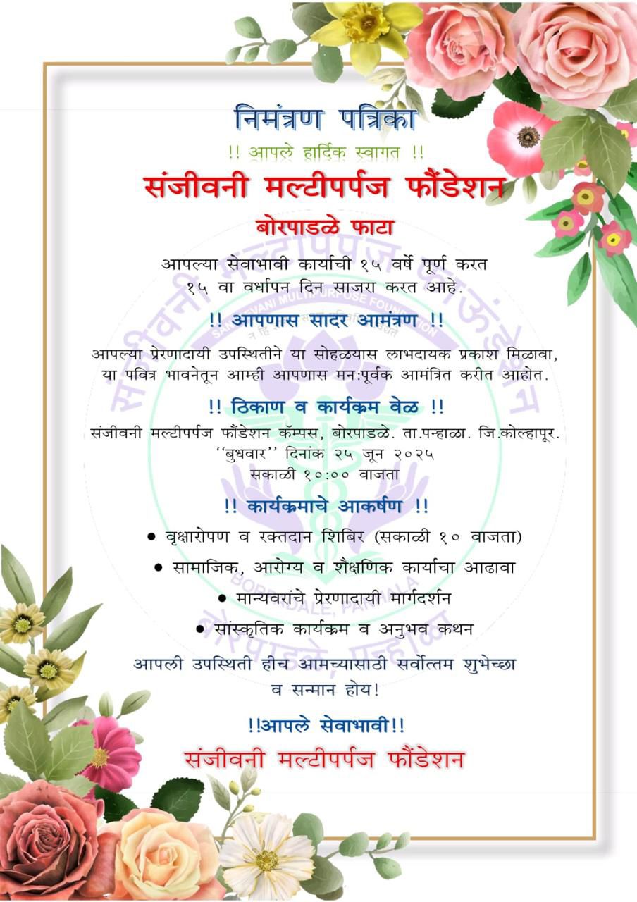 Programmes like Health Survey, Cleanliness of villages, Free Health Camps ect, are organized on the occasion of Birthday Celebration of President Dr. Deepak Patil Sir. Date: 25/08/2023